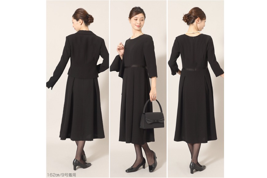 AI367-a Marycoco 家庭で洗える テーラードカラー ブラック フォーマル アンサンブル ボックスプリーツワンピース [MK-0108B ジャケット ワンピース 長袖 レディース セットアップ きれいめ メアリーココ 長崎県 島原市 ]
