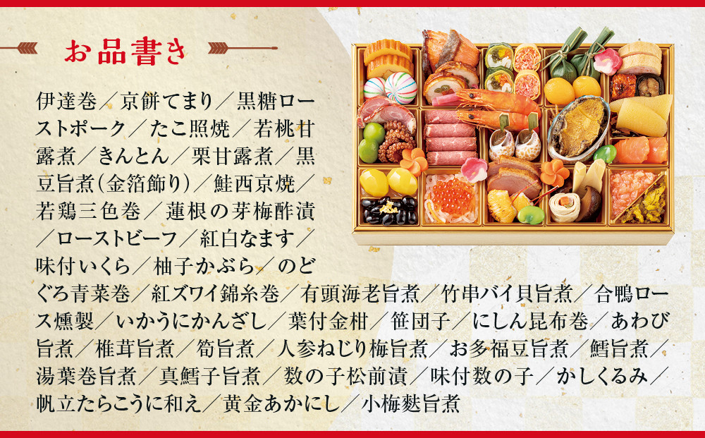 おせち「板前魂の松」和洋風 三段重 39品 3人前 6.8寸 鮑&おこわ&豚角煮 付き【年内発送】
