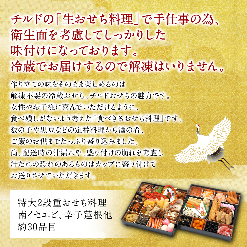 【先行予約】熊本県八代市 特大10.5寸2段重チルド「女性やお子様が喜ぶおせち料理」約30品目 寿司日本料理 葵 3~5人前 お節 おせち おせち料理 年末配送 グルメ お取り寄せ 新春 正月 【2025年12月31日お届け】