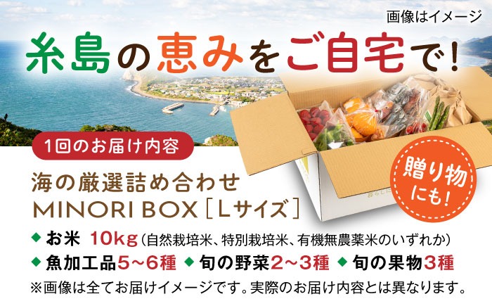 - 【全4回定期便 令和7年産新米】糸島産 魚 米 野菜 果物 厳選詰め合わせ MINORI BOX Lサイズ【季節ごとに年4回お届け】 糸島市 / emma.Inc / 米 魚 野菜 果物 詰め合わせ[AOP006] 米 こめ 魚 さかな 野菜 やさい 果物 くだもの 糸島 詰め合わせ MINOR