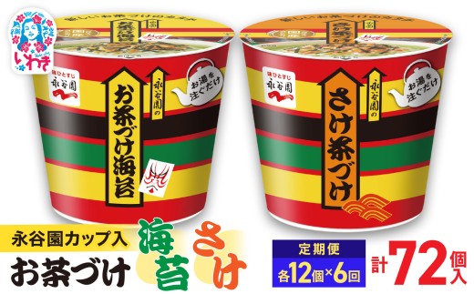 - 【6回定期便】永谷園お茶づけ海苔&さけ茶づけ 6個入×各1箱(12個)計72個|EQ036-12s-t6 | 永谷園 茶づけ カップ入り お茶づけ海苔 さけ茶づけ 鮭 インスタント 簡単便利 個包装 朝食 夜食 軽食 保存食 常温保存 まとめ買い 業務用 人気 定番 詰め合わせ アソート