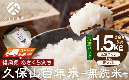 - 【特別栽培米】久保山百年米‐無洗米-真空パック(2合×5袋)計1.5kgギフトにオススメ!【精米 お米 米 ご飯 ごはん ブランド 減農薬 減化学肥料 元気つくし 夢つくし 小分け 包装 ギフト 贈答用 プレゼント 食品 ふるさと納税 炊飯 炊飯器 福岡 福岡県産 筑前 筑前町】