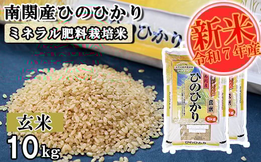 【令和7年産】南関産ひのひかり(ミネラル肥料栽培米) 玄米 10kg 熊本県 南関町産 単一原料米 ヒノヒカリ 産地直送 コメ お米 ごはん