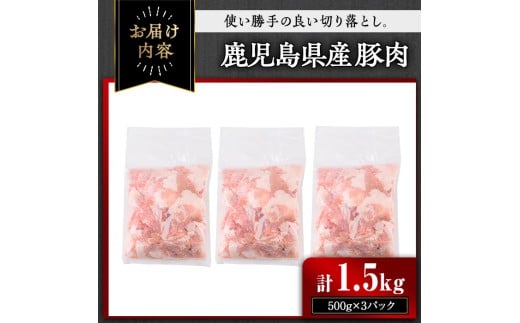 - 【訳あり】<計1.5kg>鹿児島県産豚肉 切り落とし(計1.5kg・500g×3パック) 豚肉 小分け 冷凍【おきどき】A938