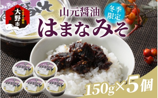 - 【先行予約】越前大野「山元醤油のはまなみそ」5個セット【冬季限定】【2025年10月初旬より順次発送】