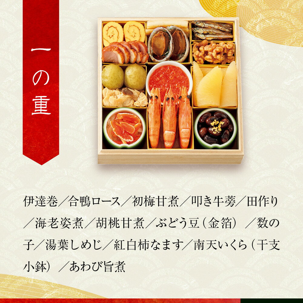 おせち「板前魂の松」和洋風 三段重 39品 3人前 6.8寸 鮑&おこわ&豚角煮 付き【年内発送】