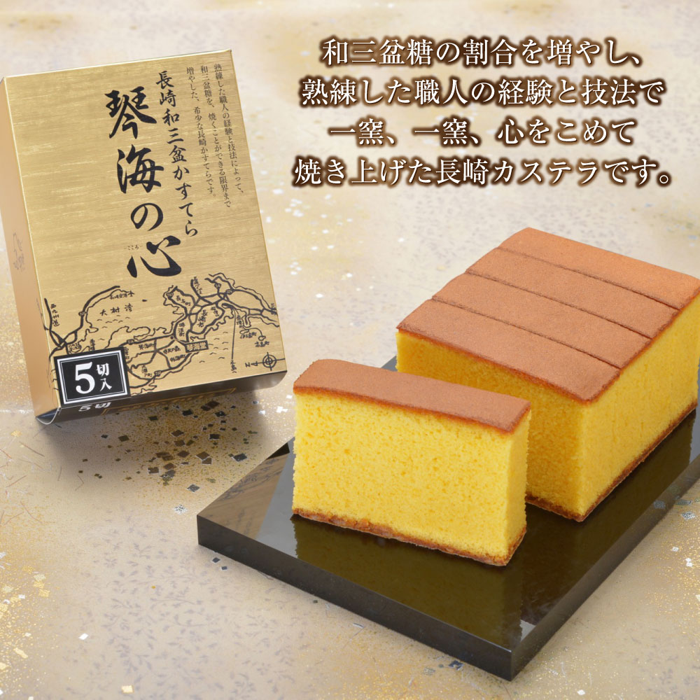 【ふるさと納税】【7営業日以内発送】【琴海の心 0.5号(5カット)×3本】 和三盆糖を限界まで使用した為、熟練職人しか焼けない、ワンランク上のかすてら カステラ カット 菓子 和三盆 ざらめ おやつ 菓子 ギフト 長崎カステラ 長崎県