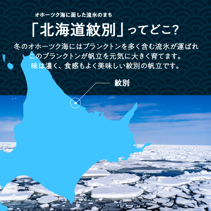 90-30 【定期便3か月】紋別一等~冷凍帆立貝柱1.1kg×1パック×3回