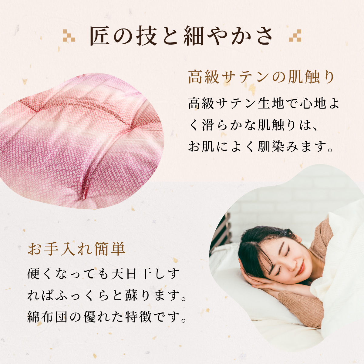 - タニグチ 職人手作り 和綴じ 掛け布団【手作り ふんわり 綿ふとん 和ふとん 掛けふとん 綿わた 天然綿 天然素材 コットン 日本製 布団 綿布団 和式布団 昔ながらの 手作り 寝具 シングル ダブル NEW 新規】 [094-a005]
