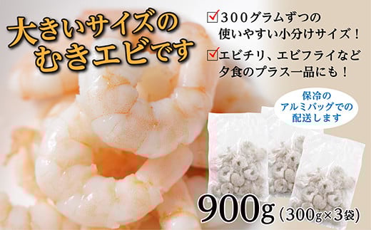 冷凍 むきエビ (非加熱) 300g × 3 合計 900g | えび 海老 小分けサイズ _b-437