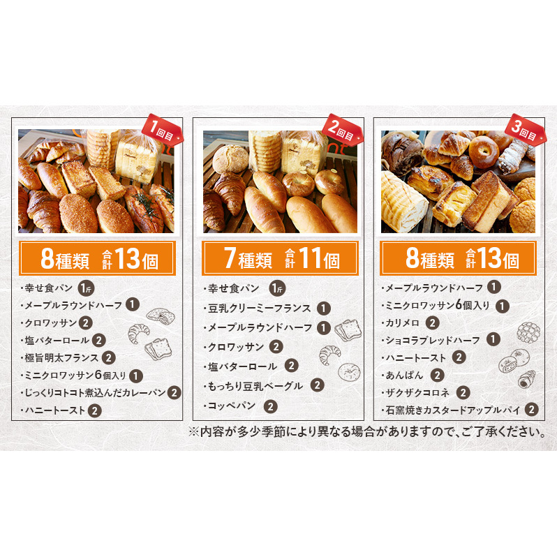《カレーパングランプリ2025グランドチャンピオン受賞カレーパン入!》クロワッサン3種の定期便(オススメ、食事パン、甘い時間)クロワッサン 食パン 朝食 ランチ セット