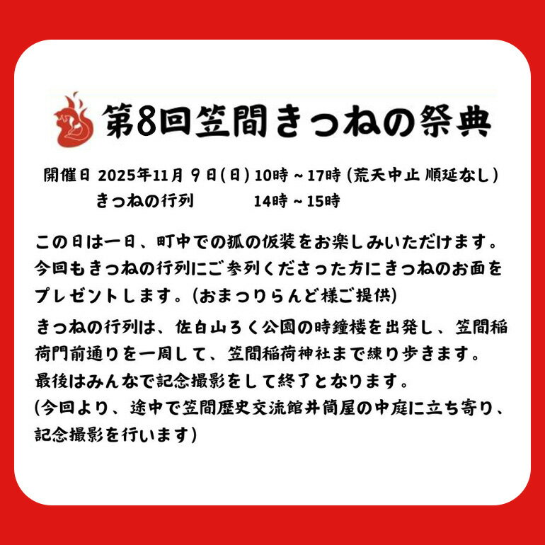 - 【ふるさと納税】第8回笠間きつねの祭典 11月9日開催 きつねの行列 前列ご参列権