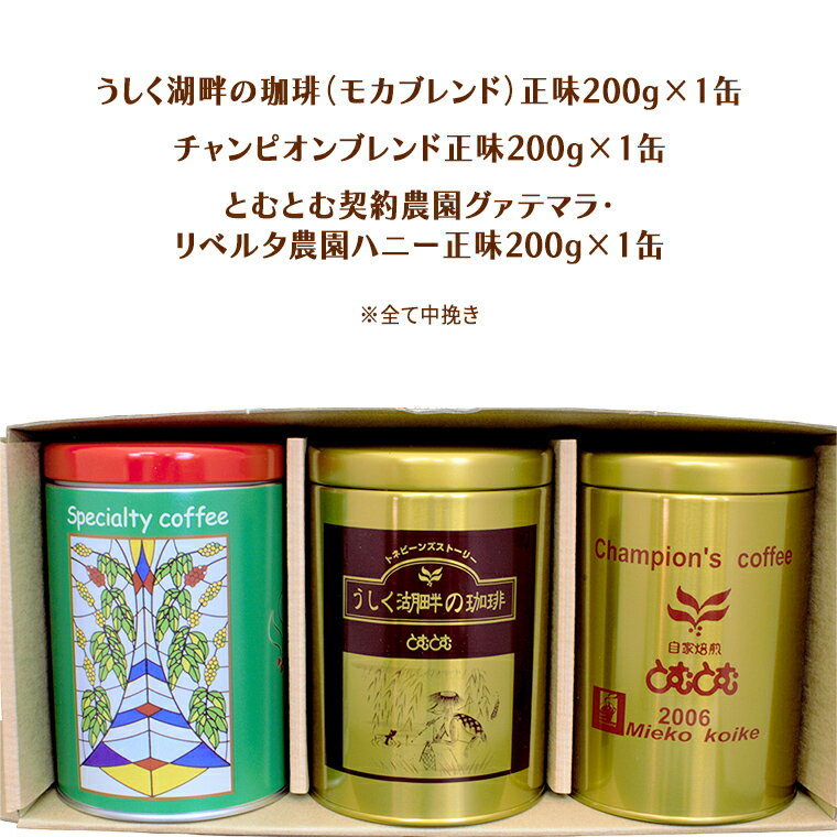 - 【ふるさと納税】≪ 熨斗付 ≫ とむとむ 自家焙煎 レギュラーコーヒー 3缶 セット ( 各200g ) 中挽き 珈琲 バリスタ ブレンド モカ 自家焙煎 香り 挽きたて 贈り物 贈答 お祝い 記念日 ギフト プチギフト 茨城 トムトム