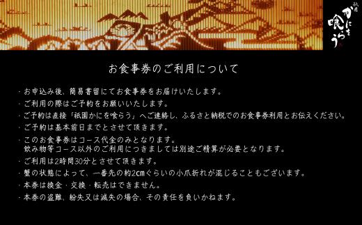 - 【京都祇園 かにを喰らう お食事券 ペア2名様分 活 柴山がに(松葉がに)コース】提供期間:令和7年11月8日~令和8年3月31日 年末年始使用不可 定休日使用不可 香美町 25-55