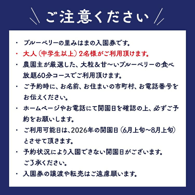 【ふるさと納税】【食べ放題!】ブルーベリー狩り入園券 大人2名分