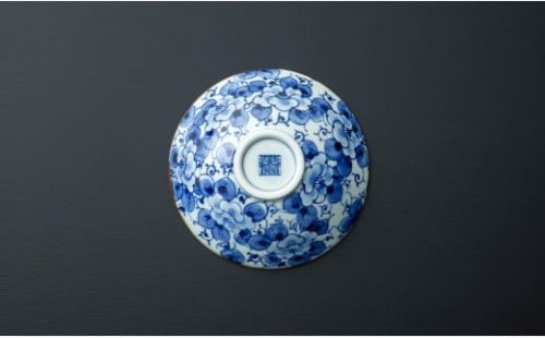 - 有田焼 渕錆染付 総手描き 花唐草絵平飯碗 ~華一園シリーズ~【西山錦華堂】食器 器 うつわ オリジナル 唐草 手描き 染付 茶碗 ちゃわん 55000円 A55-148