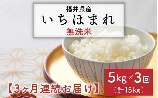 【令和7年産・新米】定期便 ≪3ヶ月連続お届け≫ 福井県のブランド米 いちほまれ 無洗米 5kg × 3回 計15kg 【 無洗米 人気 品種 ブランド米 特A 】 [F-6109]