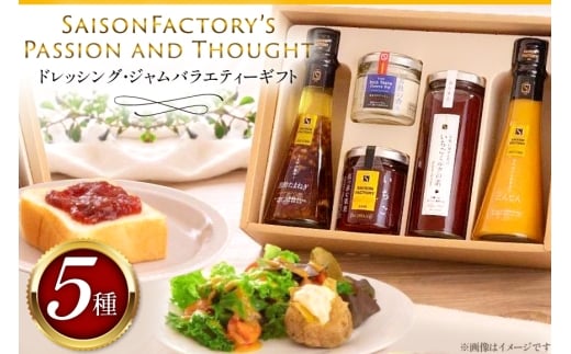 - ドレッシング ジャム 詰め合わせ バラエティー ギフト 5本 セット [セゾンファクトリー 山形県 高畠町 tk06ays740008] 黒酢 たまねぎ オニオン チーズ いちご ストロベリー にんじん 人参 食べ比べ