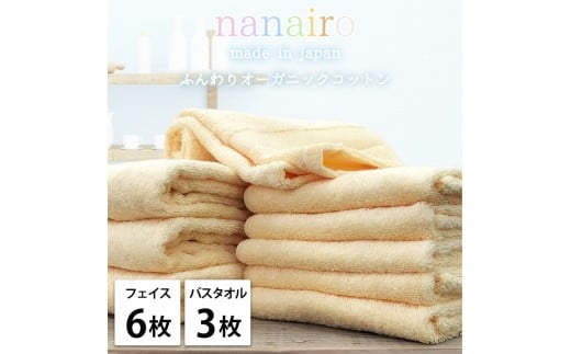 【フェイス6枚・バス3枚】しなやかオーガニックコットンタオルセット(ナナイロ)F6B3-YE