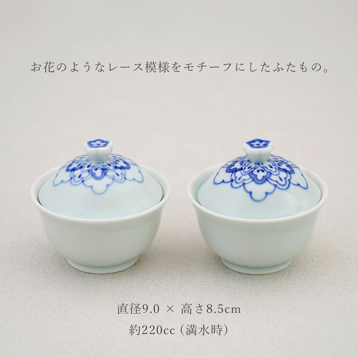 - 【ふるさと納税】有田焼 花つまみ蒸し碗 2点 セット(五月青磁レース模様)【田清窯】食器 器 うつわ 蓋物 茶碗蒸し 食器 蒸し碗 ペア ふたもの 40000円 4万円 A40-392