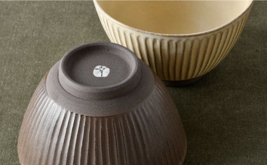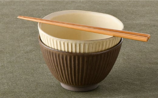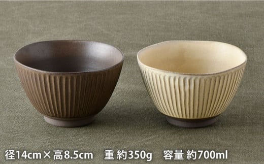 - 【波佐見焼】しのぎ どんぶり 2点セット 窯変 マット調 ブラウン・ベージュ 丼 陶器 茶碗 食器 皿 【トーエー】 [QC46]