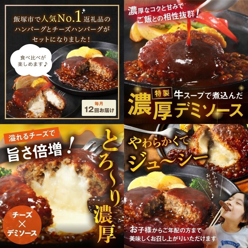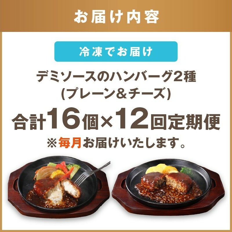 - デミソースのハンバーグ2種セット(プレーン8個&チーズ8個)計16個【毎月定期便(計12回発送)】【K-036】
