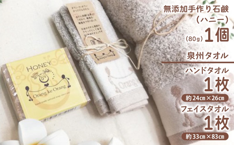 - 099H3742 【スピード発送】無添加手作り石鹸付泉州タオルセット 【ハニー】