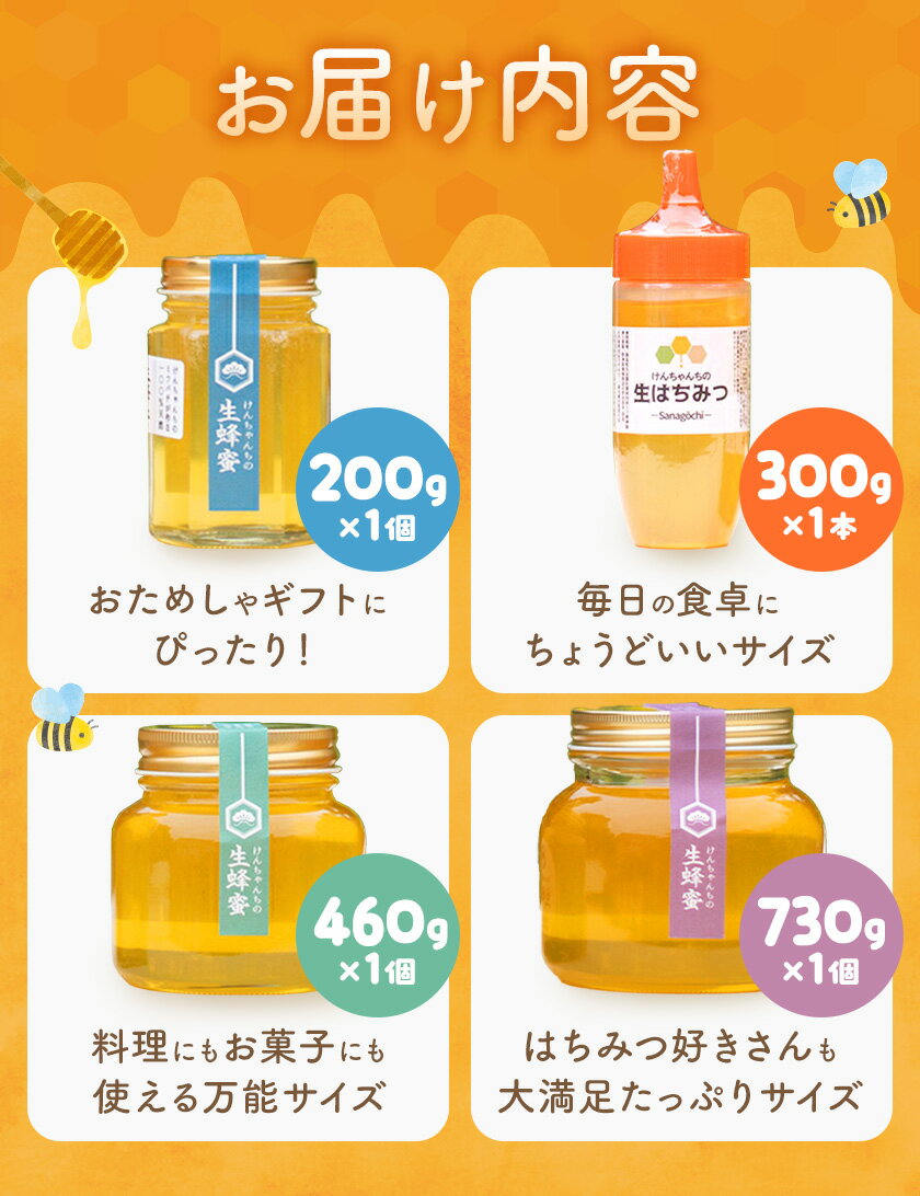 【ふるさと納税】けんちゃんちのはちみつ 200g 300g 460g 730g 全部セット《30日以内に出荷予定(土日祝除く)》ふるさと納税 はちみつ ハチミツ 蜂蜜 国産蜂蜜 天然蜜蜂 徳島県 佐那河内村 送料無料