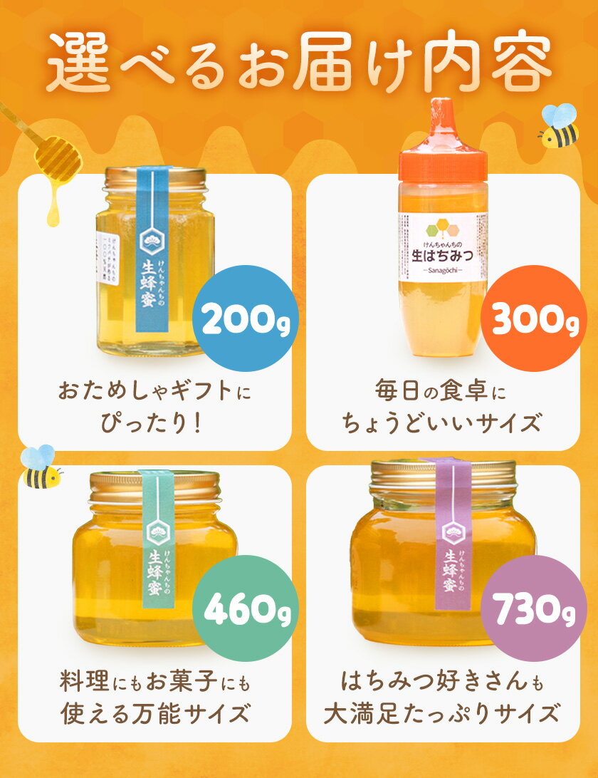 - 【ふるさと納税】けんちゃんちのはちみつ 選べる 200g 300g 460g 730g《30日以内に出荷予定(土日祝除く)》ふるさと納税 はちみつ ハチミツ 蜂蜜 国産蜂蜜 天然蜜蜂 徳島県 佐那河内村 送料無料