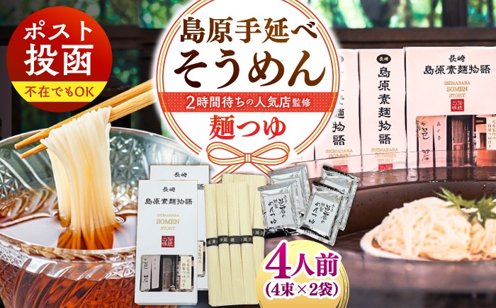 【邑居監修!麺つゆ付き】島原 手延べ そうめん 4人前 (50g×4束×2袋)めんつゆ 4袋 / 島原素麺物語 麺 乾麺 / 南島原市 / 三和サービス株式会社[SGB010]
