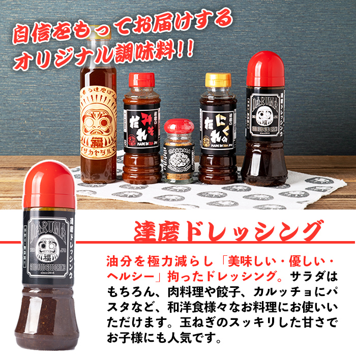 isa386 居酒屋達磨調味料セット!(ドレッシング、味噌だれ、焼肉のタレ、ポン酢、バーベキュースパイス計5種)【シャッツフードカンパニー】