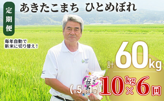 - 【ふるさと納税】米 定期便 全6回 秋田県産 あきたこまち & ひとめぼれ 食べ比べ 10kg (各5kg)×6回 計60kg 令和7年産[2025年11月頃から出荷予定]土づくり実証米 JAしんせい お届け:初回発送は11月上旬頃となります。以降、毎月中旬頃6ヶ月連続でお届けします。