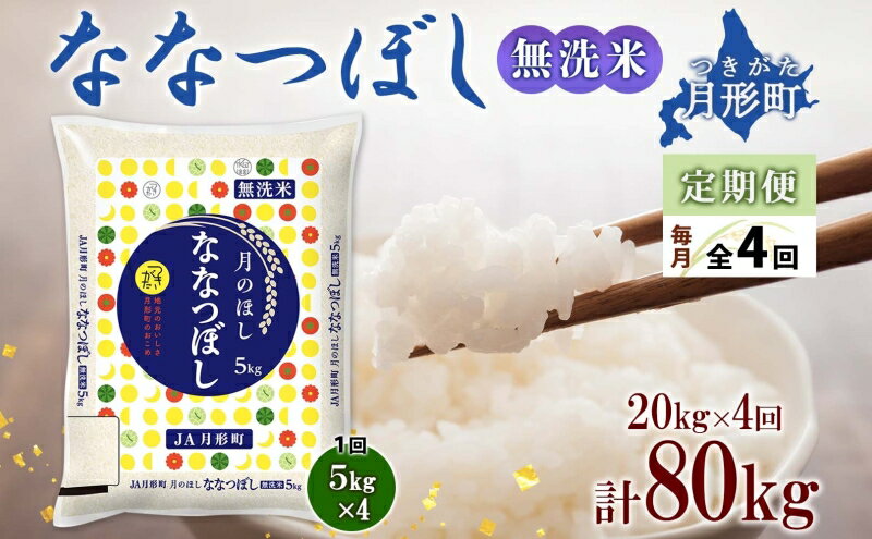 【ふるさと納税】【令和7年産先行予約】北海道 定期便 4ヵ月連続4回 令和7年産 ななつぼし 無洗米 5kg×4袋 特A 米 白米 ご飯 お米 ごはん 国産 ブランド米 時短 便利 常温 お取り寄せ 産地直送 送料無料 月形 お届け:2026年1月より順次発送