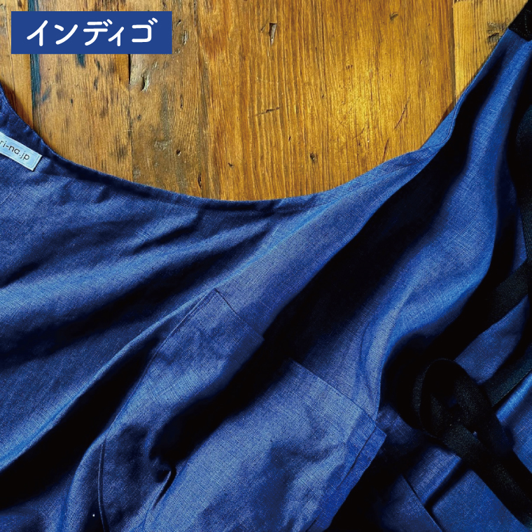 - ノリーナがデザインしたリネンエプロン(メンズ用) インディゴ (KBD-17-1)