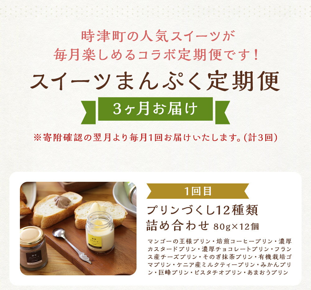 【ふるさと納税】【3ヶ月定期便】時津のスイーツまんぷく定期便 3回お届け 3ヶ月 定期便 プリン 焼きドーナツ 焼き菓子 クッキー ダックワーズ パウンドケーキ マドレーヌ スイーツ デザート 惣菜 長崎県 時津町 送料無料