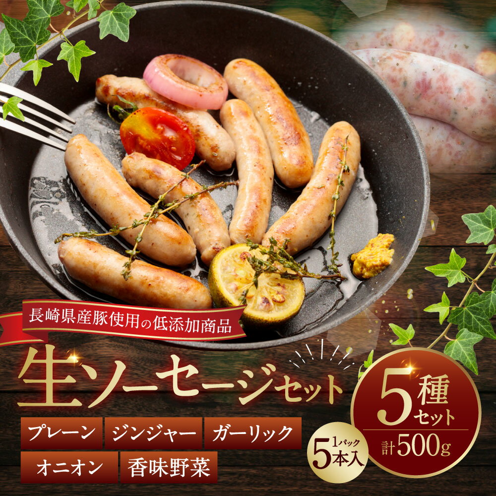 - 【ふるさと納税】低添加生ソーセージセット 1パック 5本入り×5種(1本あたり約20g) プレーン ジンジャー ガーリック オニオン 香味野菜 オランダ産マスタード 豚肉 お肉 冷凍 長崎県 長崎市 送料無料