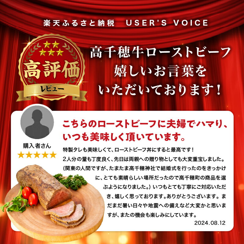 - 【ふるさと納税】【選べる内容量】《レビューキャンペーン》高千穂牛ローストビーフ 高千穂牛 牛肉 肉 ローストビーフ ビーフ ソース ブランド牛 国産牛 黒毛和牛 和牛 調理済み 味付き 真空パック おもてなし 贈答 贈り物 ギフト 記念日 ディナー 宮崎県 高千穂町 送料無料
