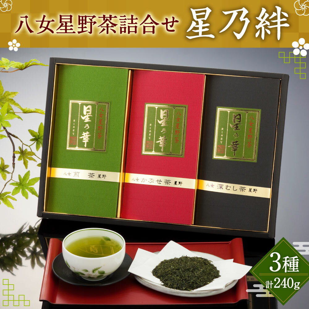 【ふるさと納税】八女 星野茶 詰合せ 星乃絆 計240g (煎茶 80g・深蒸し茶 80g・かぶせ茶 80g) 福岡県 八女市 星野村産 お茶 緑茶 茶葉 日本茶 深蒸茶 深むし茶 せんちゃ 飲み比べ 詰め合わせ セット ギフト 贈り物 送料無料