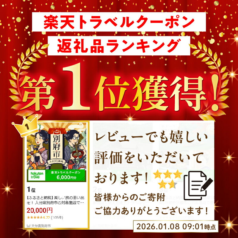 - 【ふるさと納税】 楽しい旅の思い出を! 大分県別府市の対象施設で使える楽天トラベルクーポン 寄付額20,000円 宿泊 旅行 トラベル 温泉 地獄めぐり 足湯 地獄蒸し 家族旅行 カップル 観光 ホテル 旅館 クーポン 九州 全国旅行支援 宿泊予約 体験型 節約