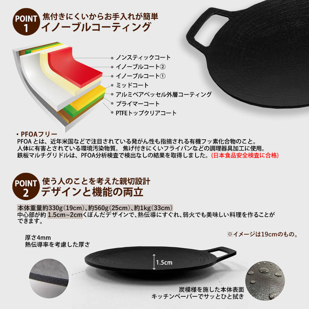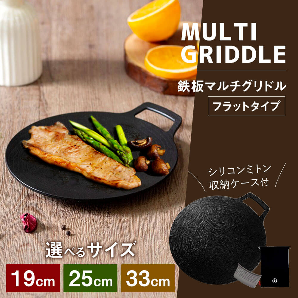 【ふるさと納税】<選べるサイズ>鉄板マルチグリドル フラットタイプ 19cm 25cm 33cm キッチン用品 調理器具 キッチン用品 調理 キャンプ用品 鉄板 フライパン キャンプ アウトドア グリドル ガス火 IH 食洗機 アルミニウム合金 送料無料