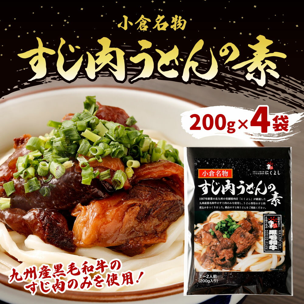 【ふるさと納税】すじ肉うどんの素 合計800g ( 200g×4袋 ) 1袋1~2人前 牛肉 煮込み 牛すじ お肉 レトルト トッピング 九州産 黒毛和牛 甘辛 小倉名物 国産 送料無料