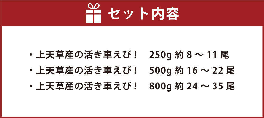 - 【ふるさと納税】【配送日指定品】上天草産の活き車えび! 250g~800g 約8~35尾 選べる内容量 選べる 車海老 えび くるまえび 魚介 海鮮 活き海老 活魚 国産 熊本県 上天草市 送料無料【発送期間2025年10月15日から2026年5月31日】