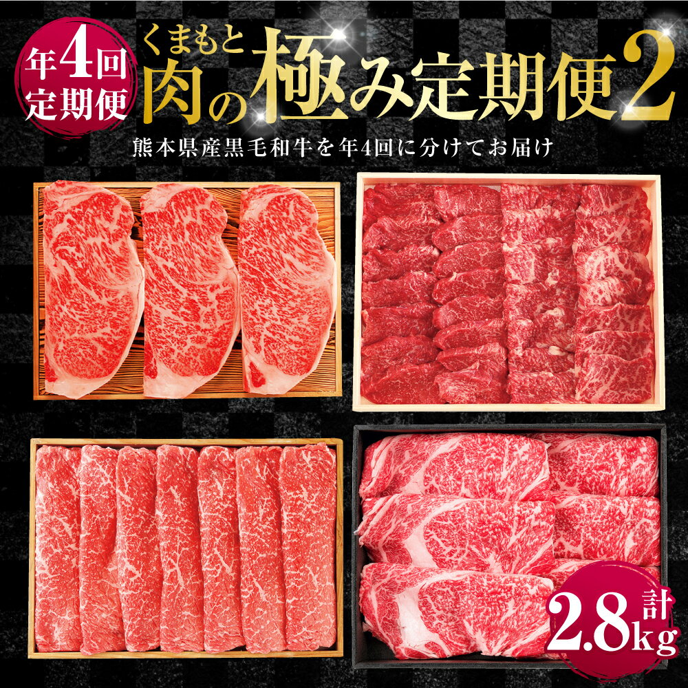 - 【ふるさと納税】【年4回定期便】くまもと肉の極み定期便2 合計2.8kg 定期便 定期配送 肉 お肉 牛肉 赤牛 あか牛 くまもとあか牛 国産牛 和牛 サーロインステーキ モモ カタ ロース 肩ロース 冷凍 九州 熊本県 送料無料