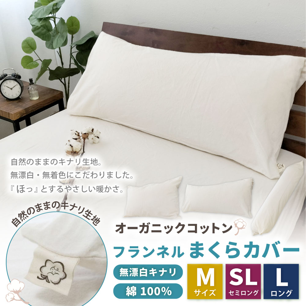 - 【ふるさと納税】<選べるサイズ>オーガニックコットンフランネルまくらカバー 無漂白キナリ【 Mサイズ セミロングサイズ ロングサイズ 】 綿100% 起毛 キナリ生地 無着色 中かぶせ式 ノンファスナー 枕カバー ふとん 寝具 大阪府 阪南市 送料無料