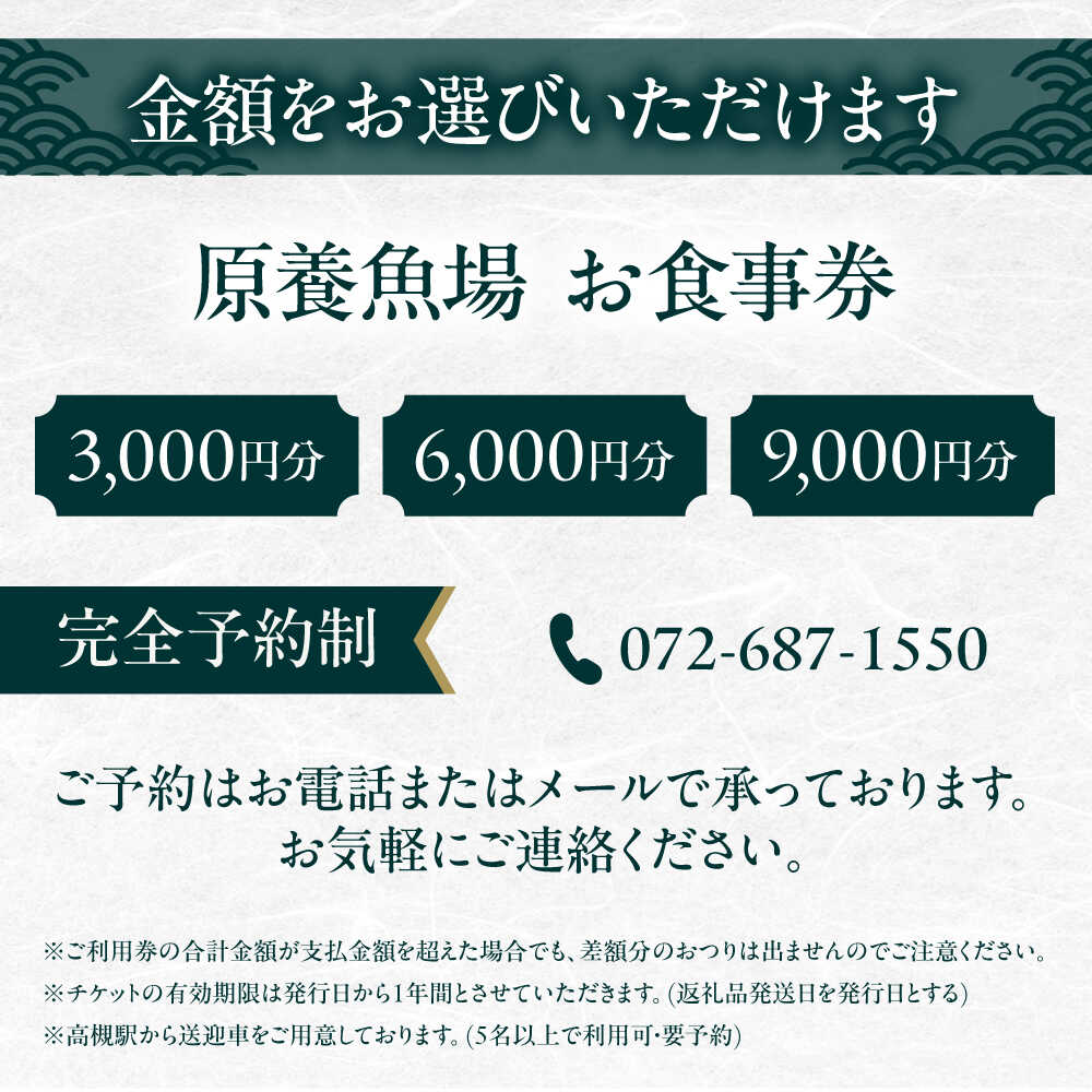 - 【ふるさと納税】【選べる利用金額】原養魚場 食事券 旅行 食事券 チケット お食事チケット ごはん レストラン ランチ ディナー 川魚 鯉料理 ギフト プレゼント ギフト 贈り物 贈答 プレゼント 人気 おすすめ 大阪 大阪府 高槻 大阪府高槻市/株式会社原養魚場[AOEA001]