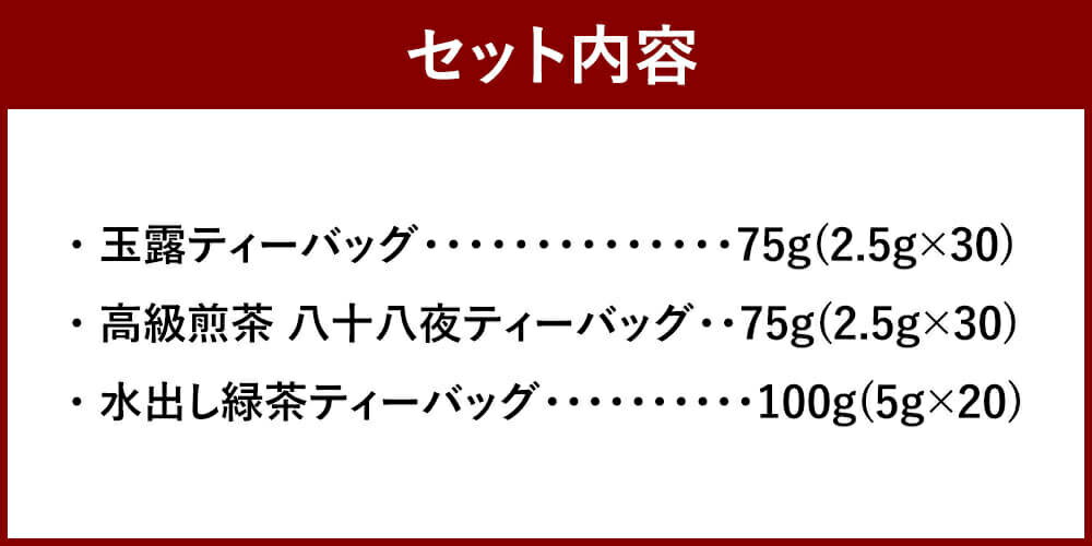 - 【ふるさと納税】中山吉祥園こだわりの八女茶ティーバッグ 3種セット 玉露 八十八夜 水出し 八女茶 茶葉 ティーバッグ 飲み比べ セット ティーパック 福岡県 送料無料