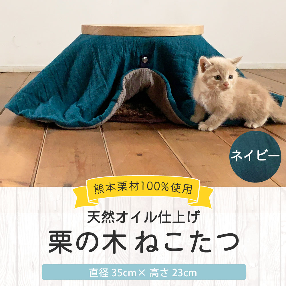 【ふるさと納税】栗の木 ねこたつ ネイビー 直径35cm 高さ23cm こたつ ペット用 猫用 テーブル こたつ ネコ 猫 ねこ 熊本栗材100% おしゃれ オシャレ 北欧 木製 インテリア 家具 熊本県産 国産 送料無料