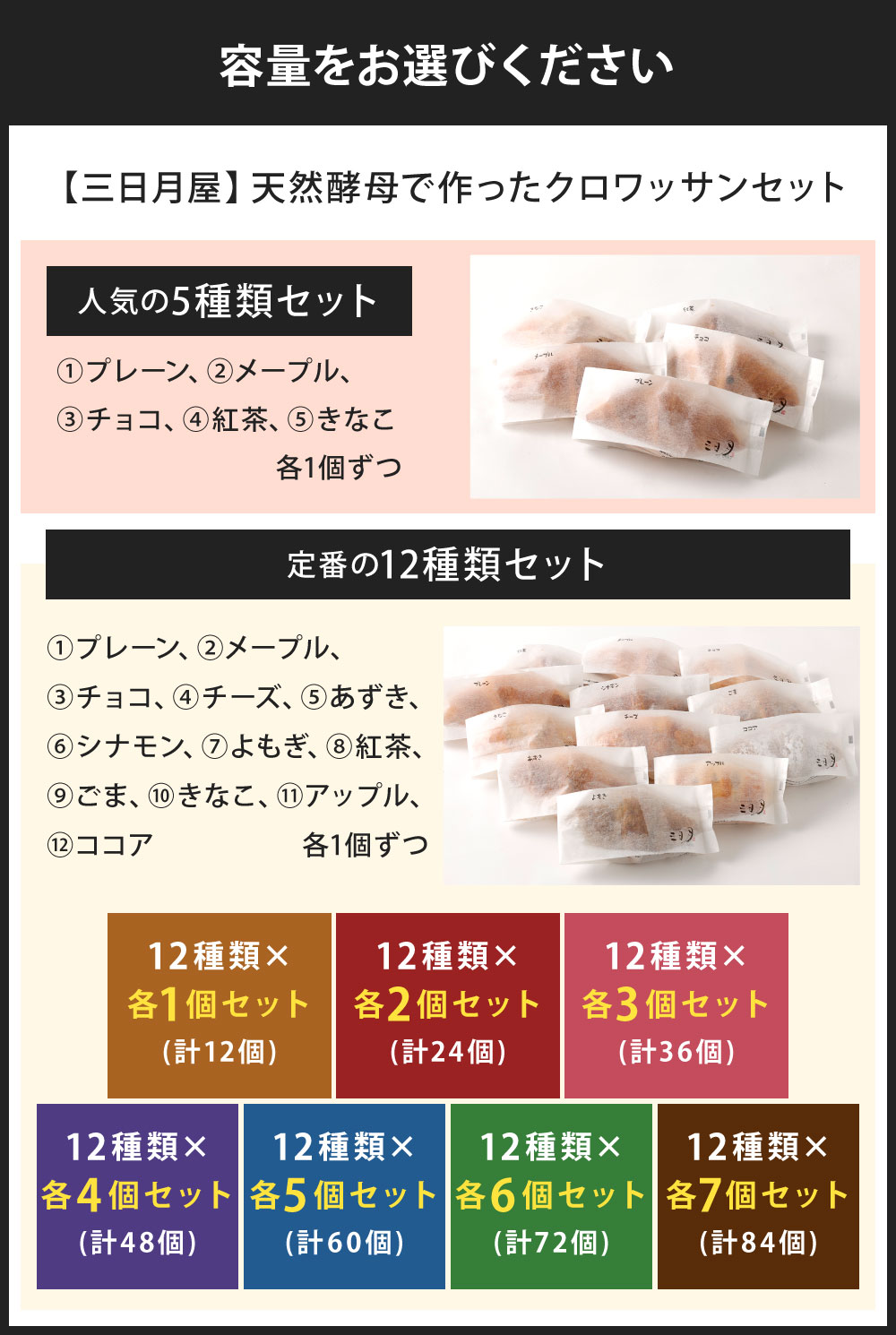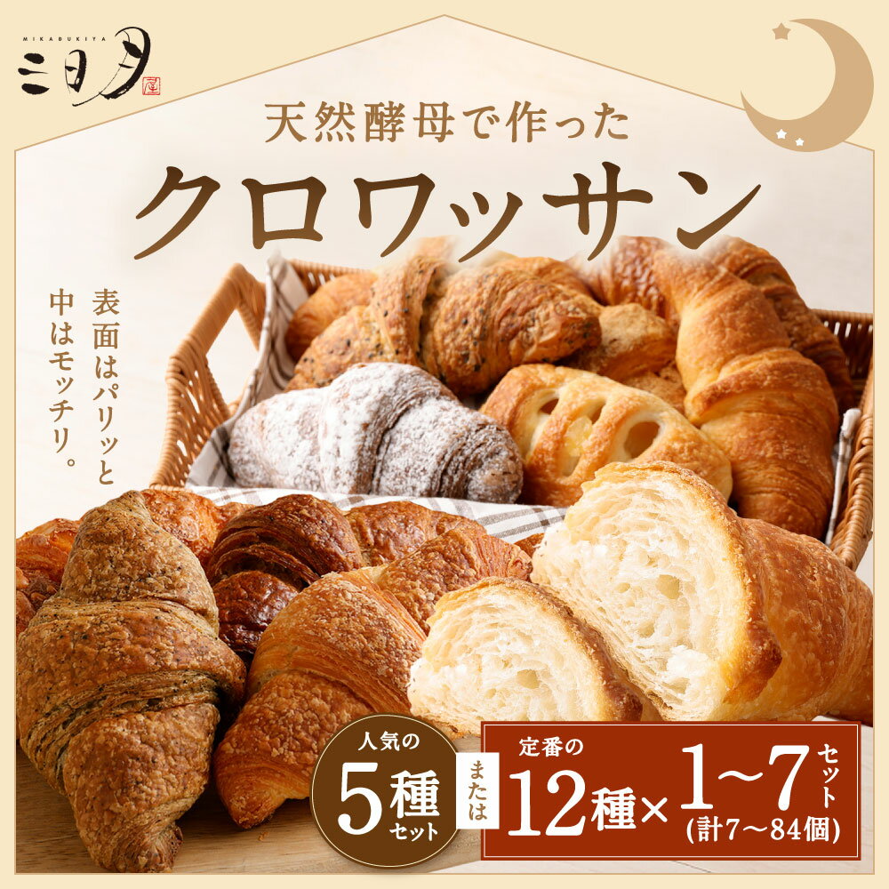 【ふるさと納税】【三日月屋】天然酵母で作った クロワッサン 〈選べる個数〉5種 または 12種 セット 人気 定番 詰合せ プレーン メープル チョコ チーズ あずき シナモン よもぎ 紅茶 ごま きなこ アップル ココア 軽食 朝食 おやつ パン 冷凍 国産 福岡県北九州市