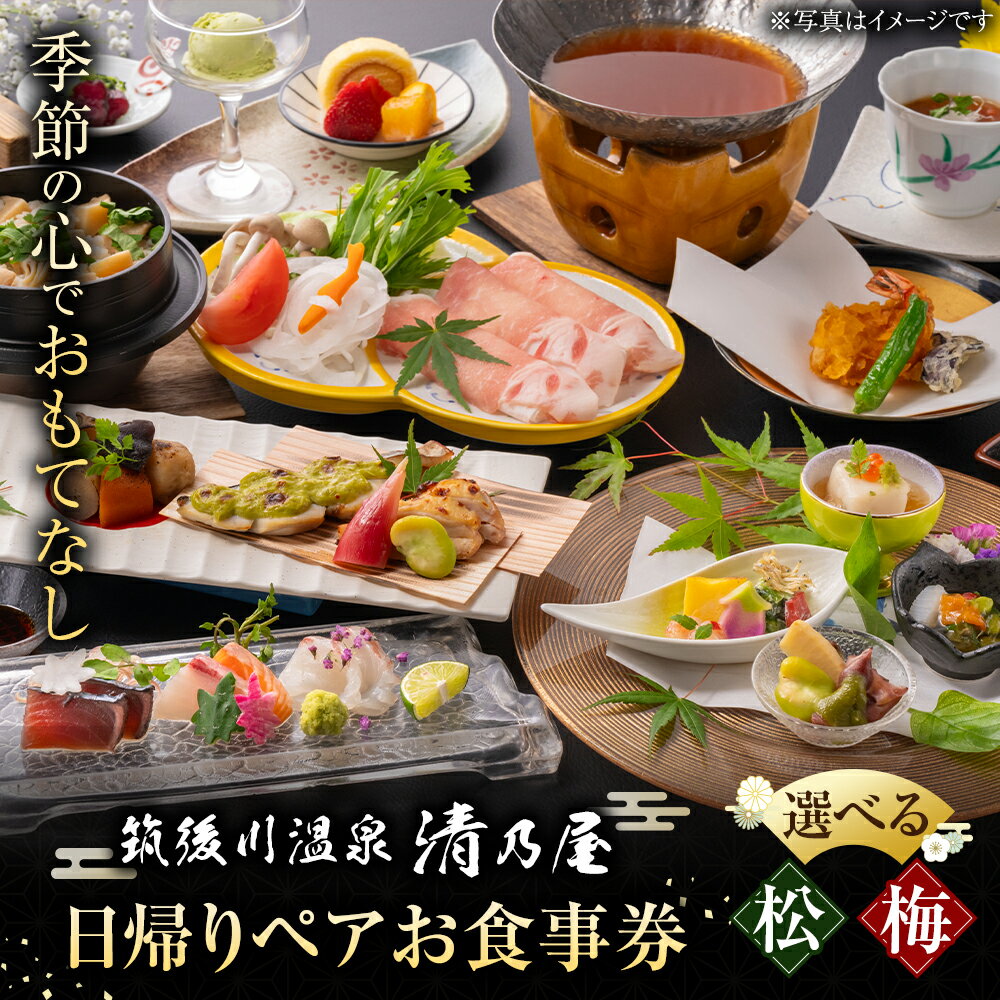 - 【ふるさと納税】【日帰りペアお食事券】筑後川温泉清乃屋 (松・梅) 旅行 旅 食事券 チケット 温泉 ペア 送料無料 福岡県 うきは市