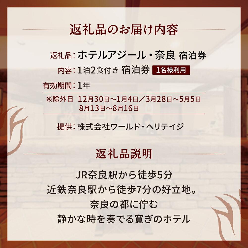 - 【ふるさと納税】宿泊券 ホテルアジール・奈良 1泊2食付き宿泊券【1名様利用】ホテル 観光ホテル 高級ホテル 1泊2食 大浴場 温泉 陶器風呂 ラウンジ 宴会場 旅行 リフレッシュ ギフト プレゼント 贈答品 お礼の品 なら 奈良県 奈良市 F-52